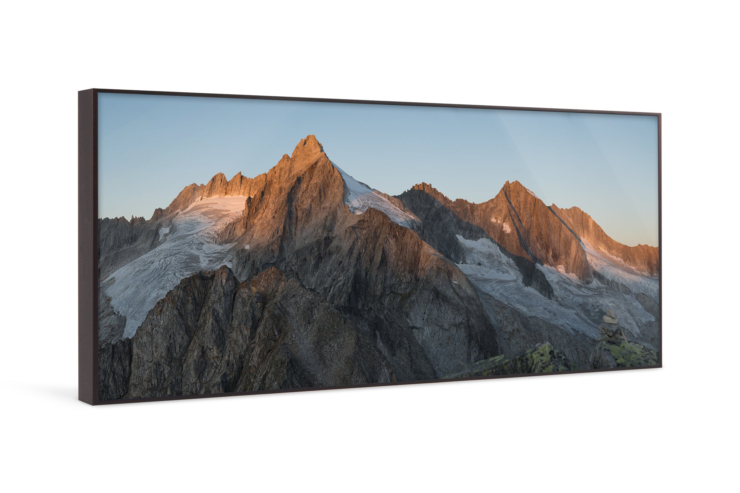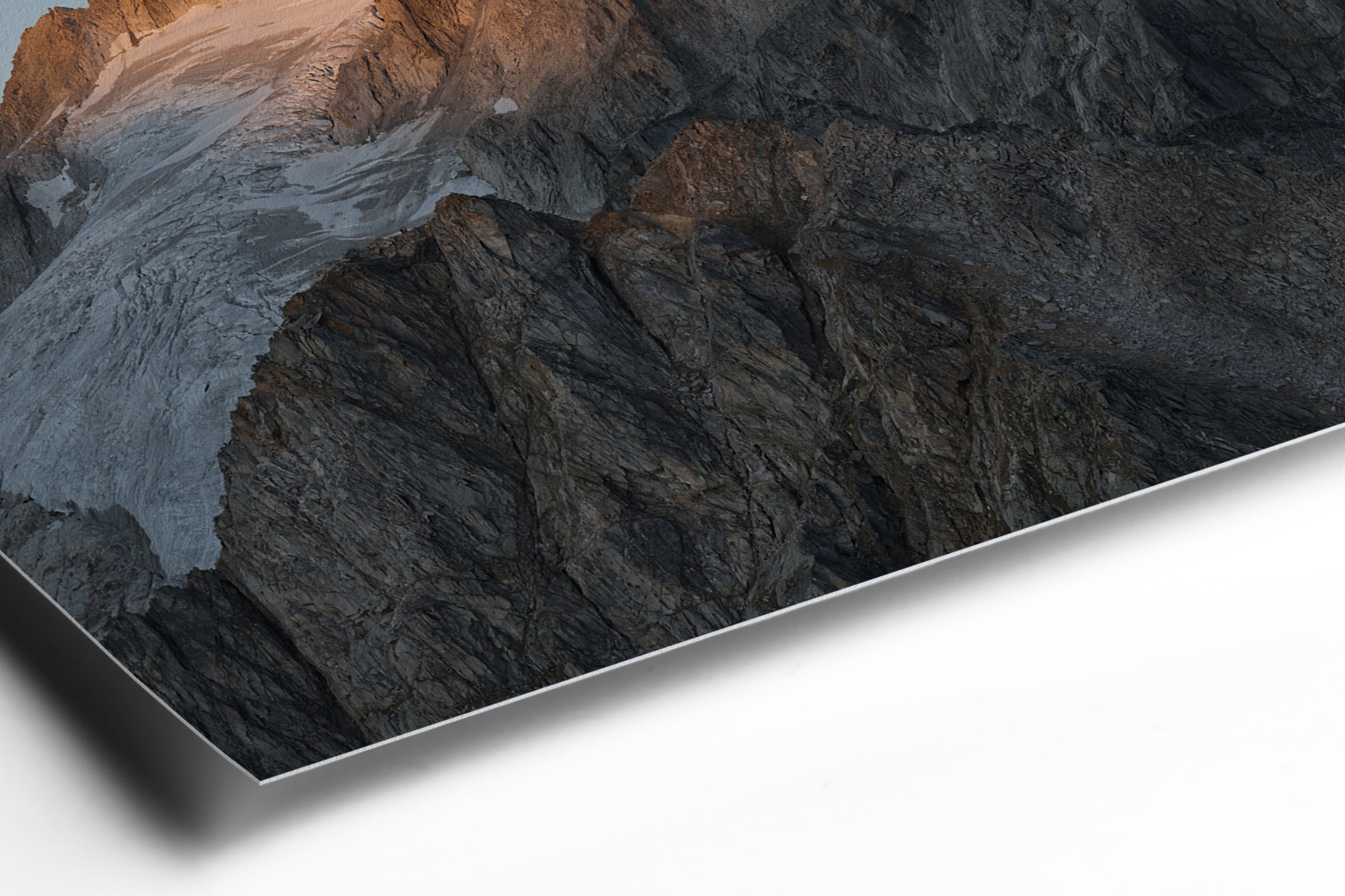 Witness the serene majesty of “Dawn's Embrace,” an exquisite fine art photograph capturing the breathtaking interplay between light and nature. As the first rays of sunrise caress the rugged mountain peaks, a gentle glow envelops the stark, icy landscape, highlighting the textures of ancient glaciers and rocky crags. The composition masterfully balances shadow and illumination, drawing the viewer into a tranquil moment of profound natural beauty. This piece evokes a sense of calm and introspection, inviting collectors to pause and appreciate the sheer magnificence of untouched wilderness. A testament to nature's timeless allure, "Dawn's Embrace" stands as a unique and collectible artwork, offering an exclusive glimpse into a majestic world beyond the reach of everyday life. Perfect for the discerning collector’s gallery, this photograph is a celebration of Earth’s unyielding splendor.