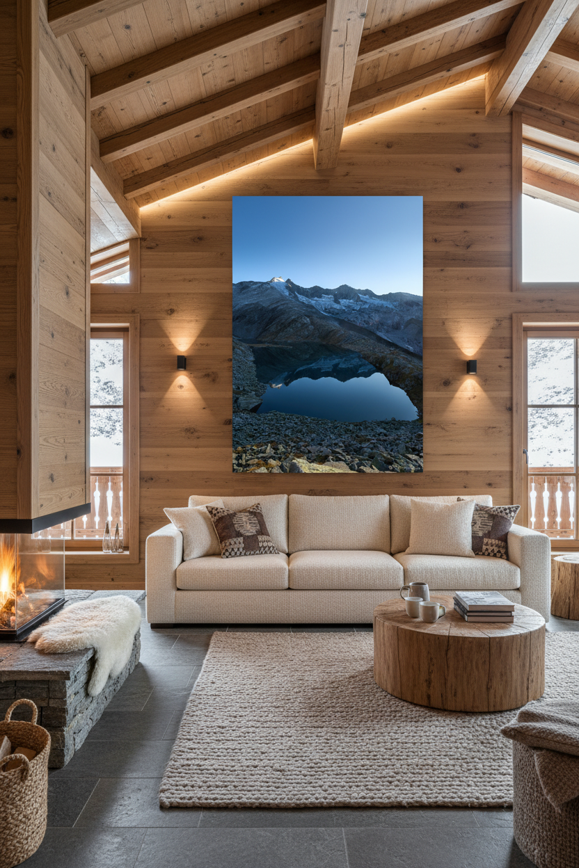 In this moment, nature exudes a quiet grace. Where light, mountain, and water merge in perfect harmony. The photograph captures not only the breathtaking beauty of this untouched landscape, but also the profound calm that accompanies the end of day in the high Alps.