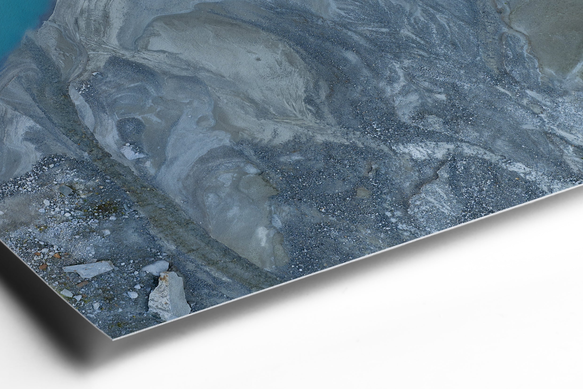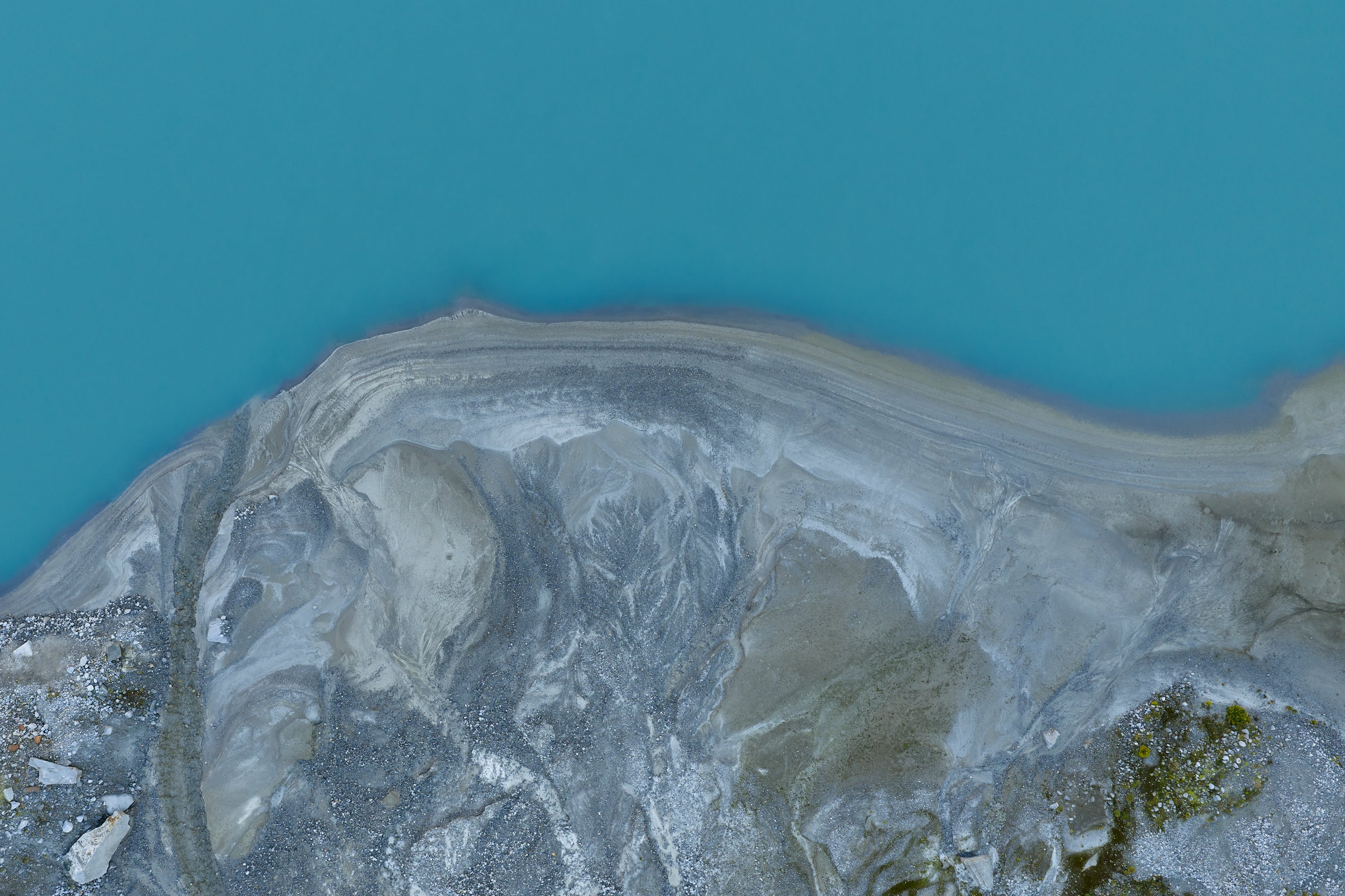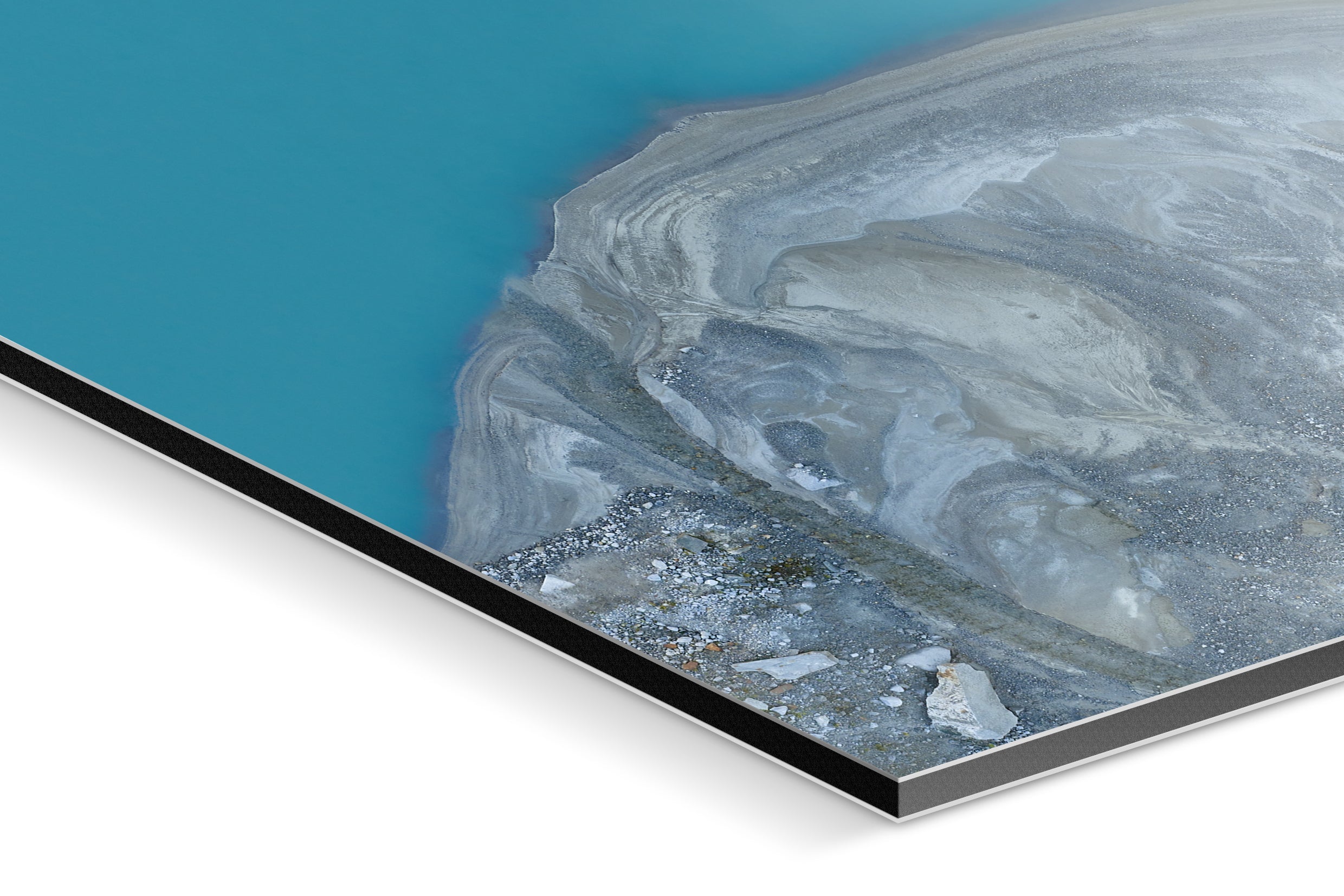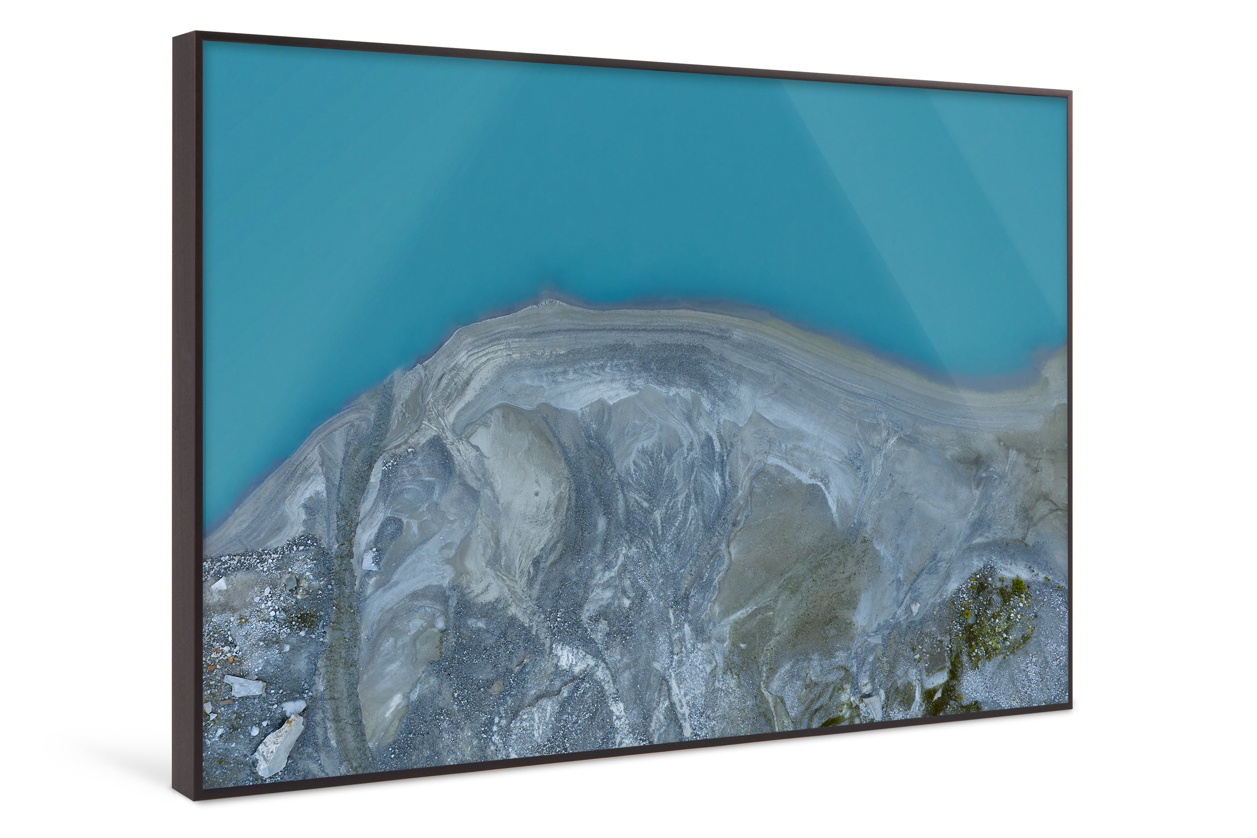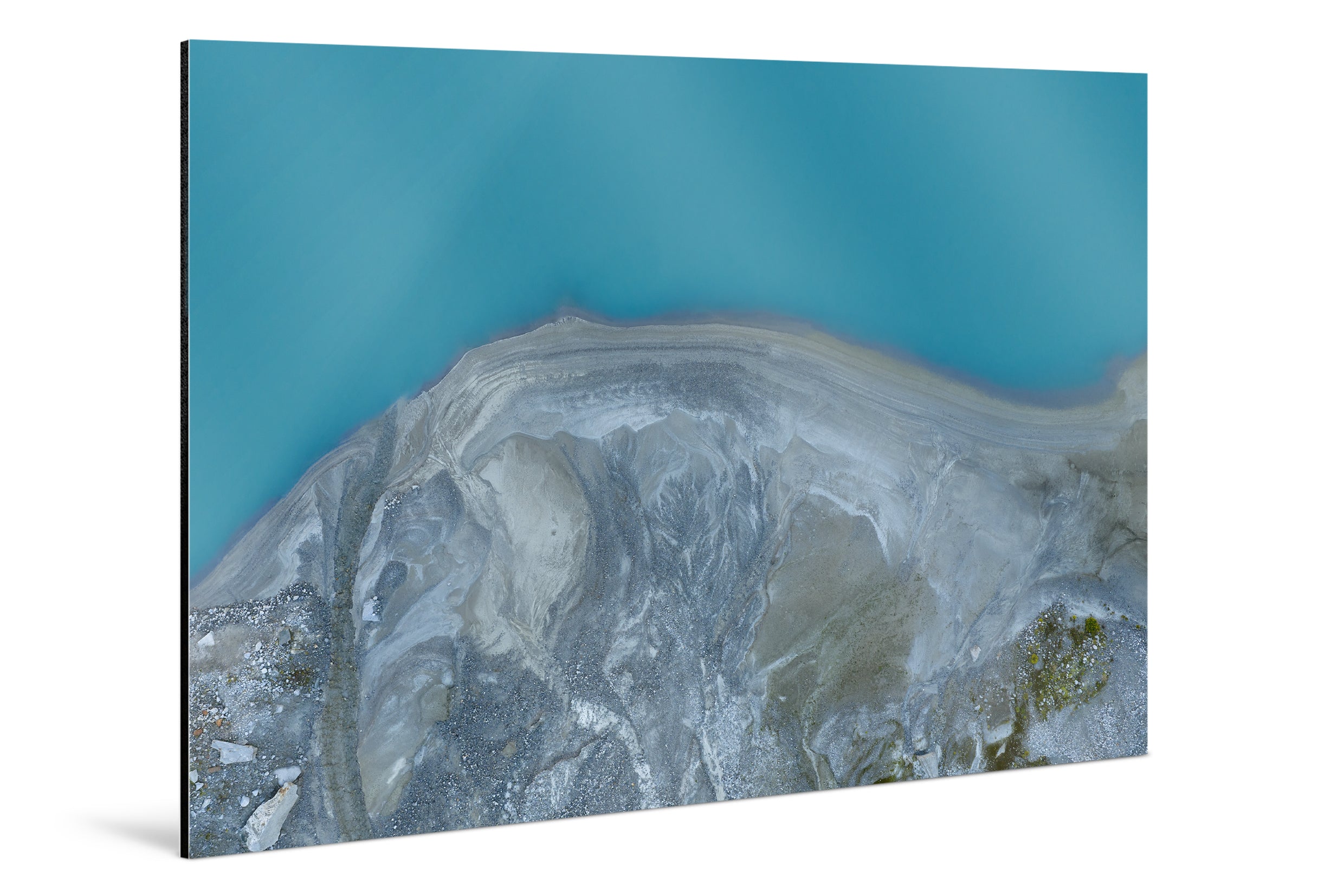 Taken just before sunrise, Glacial Shore #1 captures the landscape in the quiet tension between night and day. The deep turquoise of the lake meets the cool, textured sediment of the shoreline — a surface shaped by time, water, and the slow rhythm of erosion.