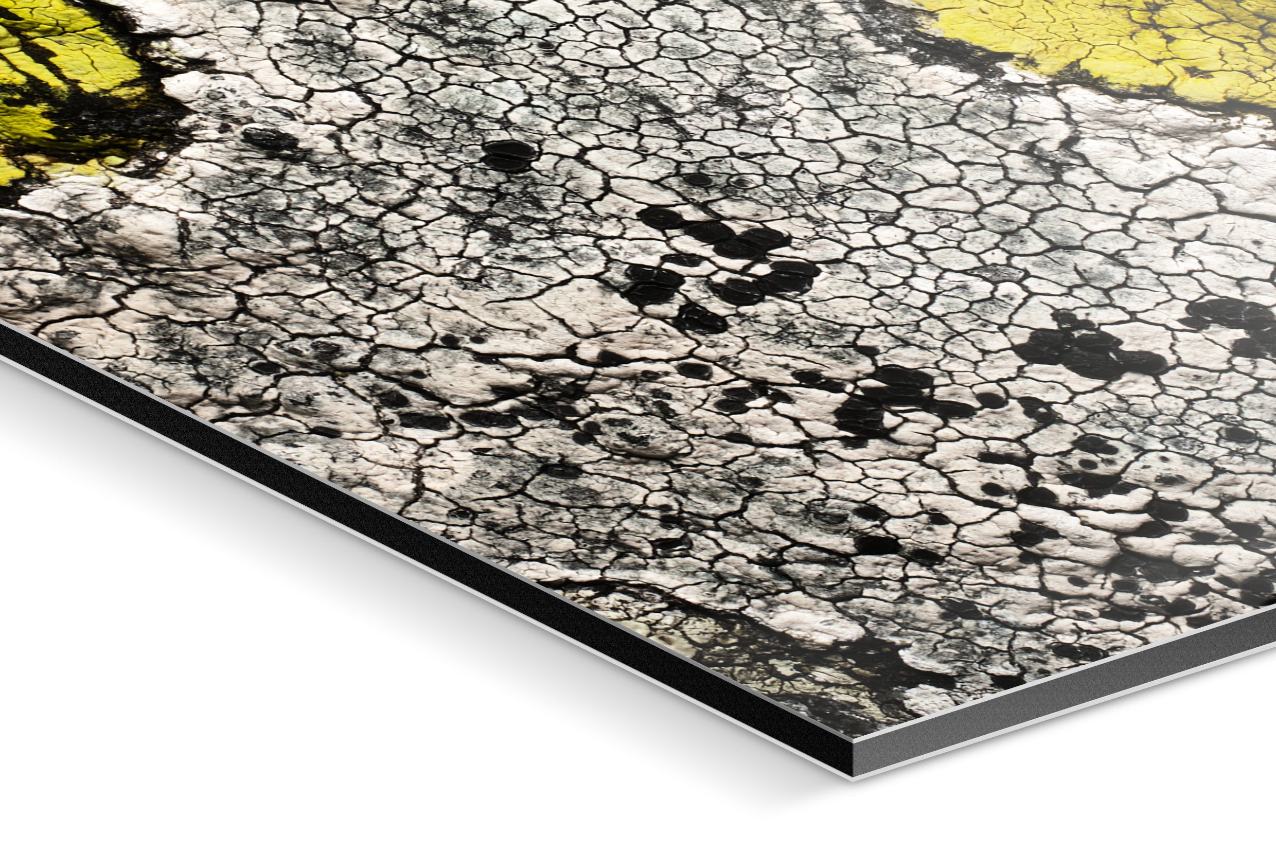 This image captures the silent competition of organisms on stone, transforming a few square centimeters of rock into a composition that echoes the color field works of Rothko and Kline. The intricate craquelé patterns reveal themselves in breathtaking detail at larger print sizes, making this piece ideal for spaces where art invites closer inspection.