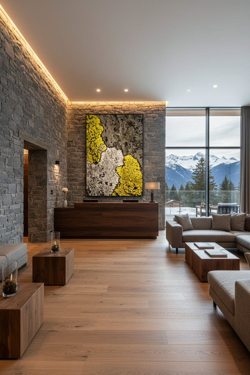 A striking statement piece for modern interiors, from hotel lobbies and wellness areas to executive offices and private residences. The organic textures and earthy palette bring warmth and depth to minimalist architecture while holding their own against bold contemporary design.