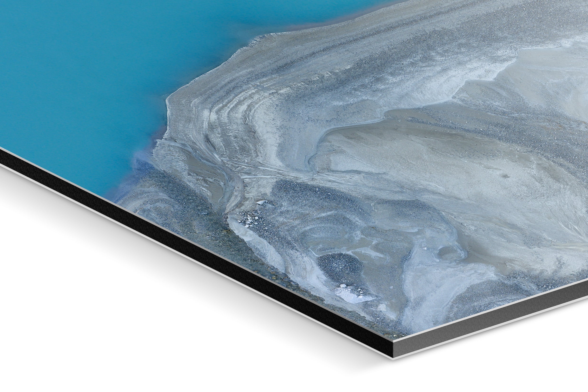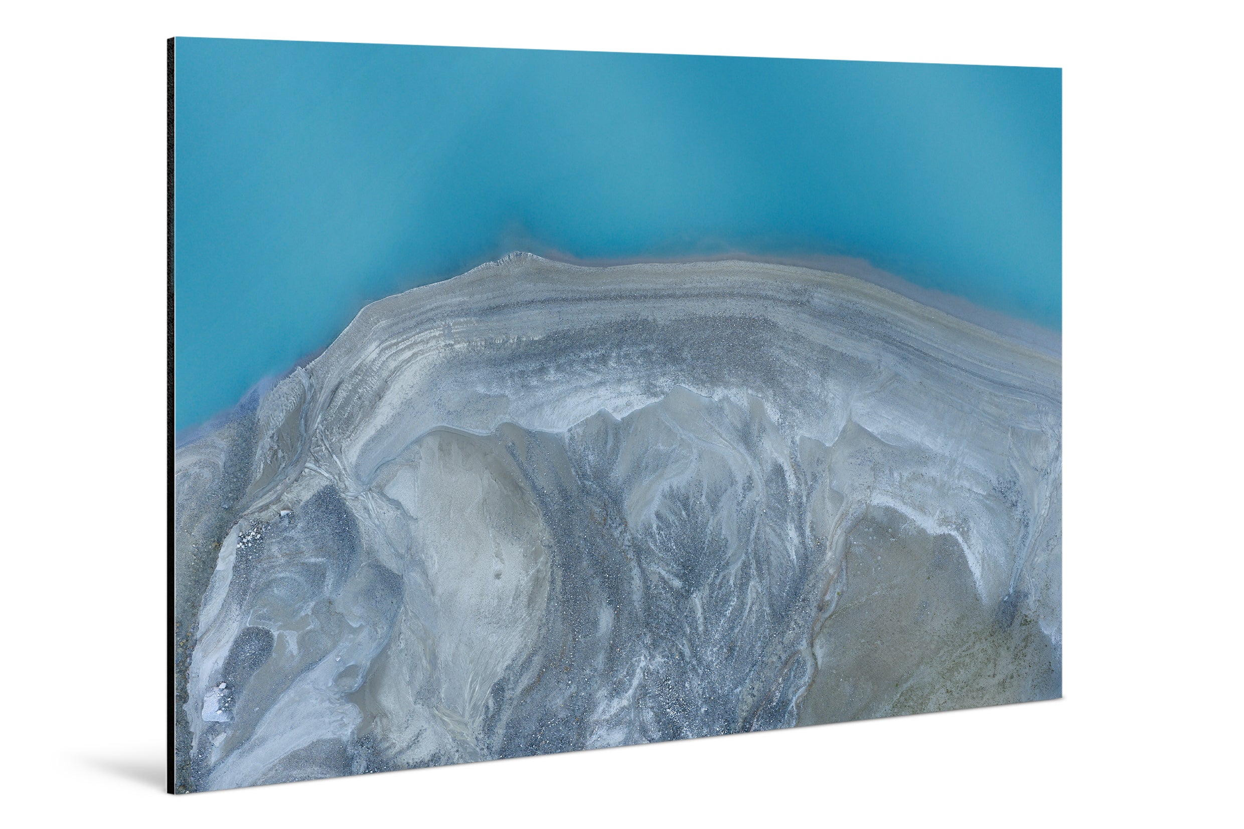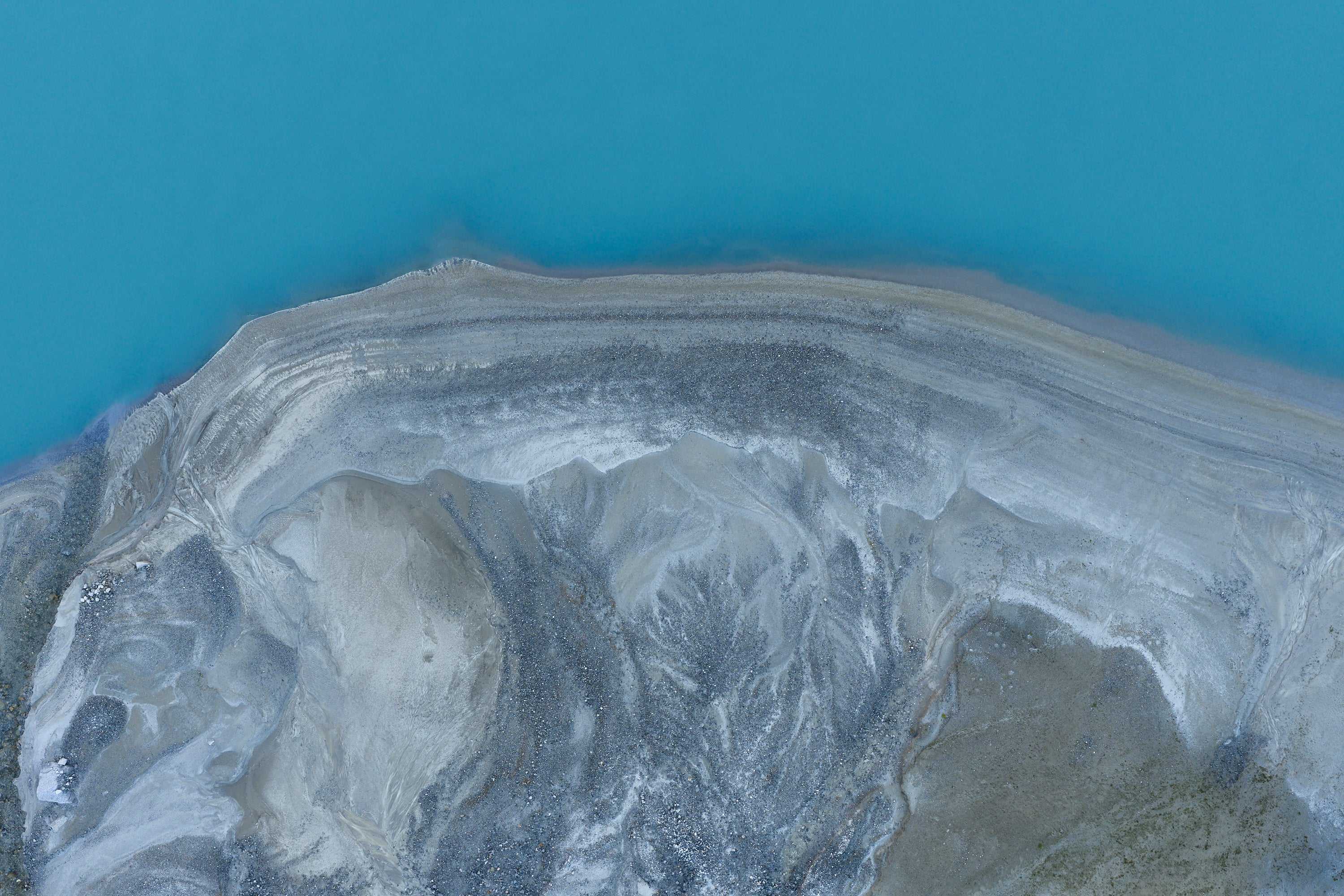 Taken just before sunrise, Glacial Shore #3 captures the landscape in the quiet tension between night and day. The deep turquoise of the lake meets the cool, textured sediment of the shoreline — a surface shaped by time, water, and the slow rhythm of erosion.